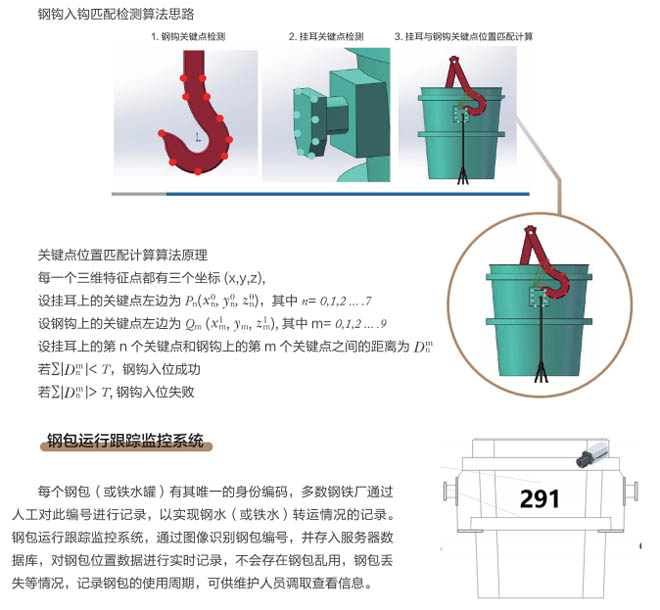 近年來,冶金行業(yè)智能化、自動化、云時(shí)代等大數(shù)據(jù)廣泛應(yīng)用,煉鋼車間是冶金行業(yè)的重點(diǎn)區(qū)域,廠區(qū)設(shè)備復(fù)雜、環(huán)境差、安全隱患多等因素更需要進(jìn)行設(shè)備自動化、智能化的升級管理、實(shí)現(xiàn)廠區(qū)無人化智慧工廠目標(biāo)的發(fā)展。起重機(jī)作為煉鋼、煉鐵、軋鋼車間的主要設(shè)備,起重機(jī)工作中對在工位操作越來越精準(zhǔn),需要駕駛員及時(shí)準(zhǔn)確觀察工位狀態(tài),由于駕駛室的位置和現(xiàn)場的工況環(huán)境影響經(jīng)常引起操作失誤,鋼包起吊安全事故頻發(fā),特別是對于鋼包掛鉤是否完整嵌入掛耳,是否進(jìn)入正確的起吊姿態(tài)沒有直接的判斷和監(jiān)控。研發(fā)起重機(jī)鋼包定位掛鉤識別管理系統(tǒng)是安全生產(chǎn)的剛性需求。