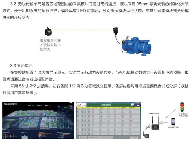 3.4軟件系統(tǒng)需提供人機界面軟件,直觀指示電機等設備的振動數(shù)據(jù);分析處理設備數(shù)據(jù),判斷設備狀態(tài),識別設備故障;提供設備狀態(tài)、報警信號等送至管理維護人員。